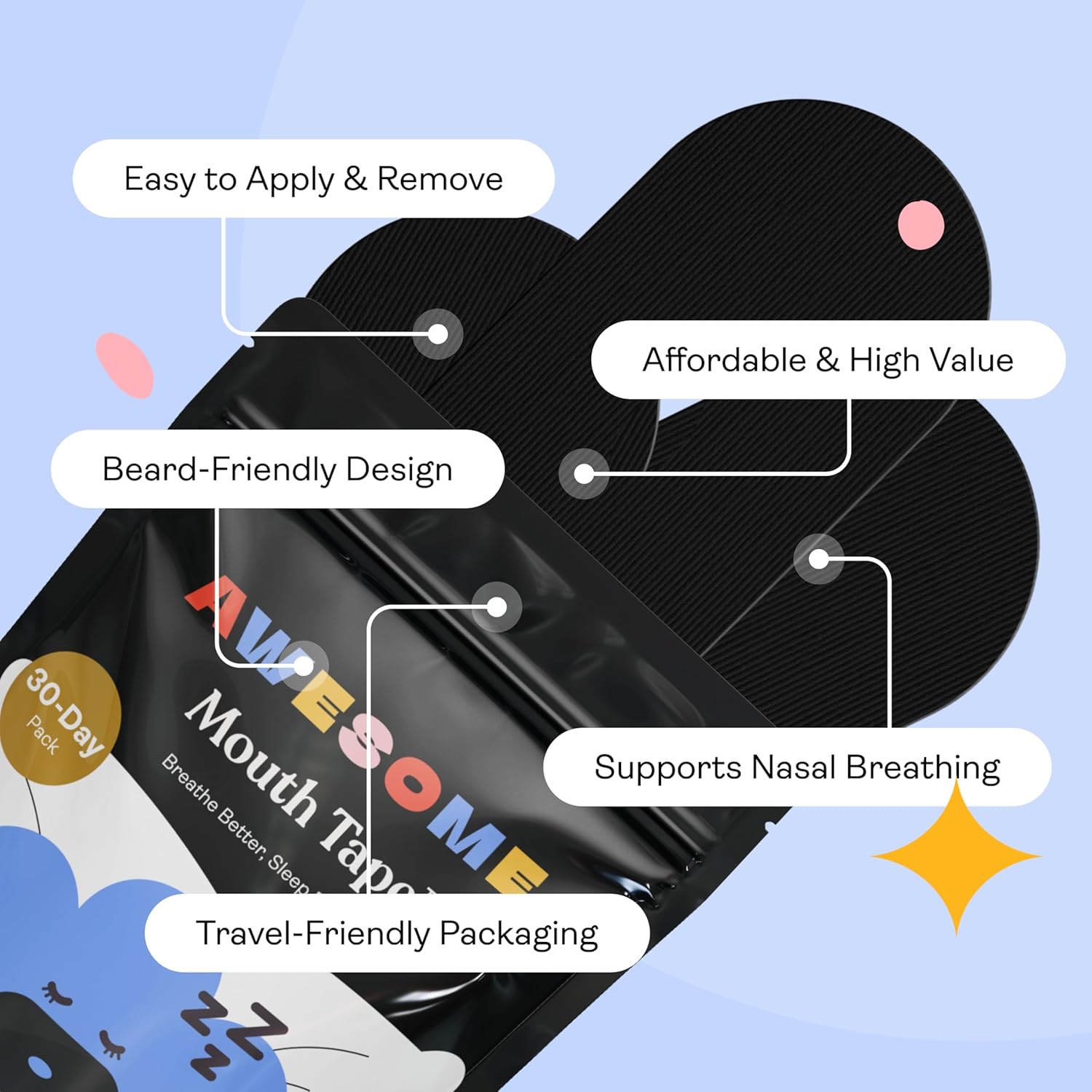 Absolutely. By preventing mouth breathing, our mouth tape helps reduce the drying effects that lead to bad breath and dry mouth. When you breathe through your nose, your mouth stays moist, so you wake up feeling fresher and more comfortable.